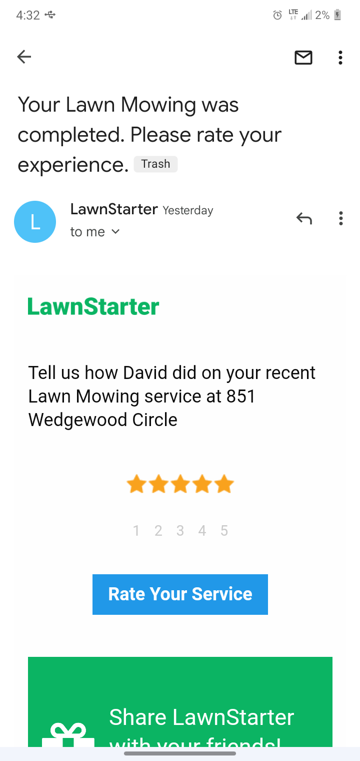LawnStarter is doing very well it rubs off on you and. They are super responsive and really. One of the best Lawn Services.